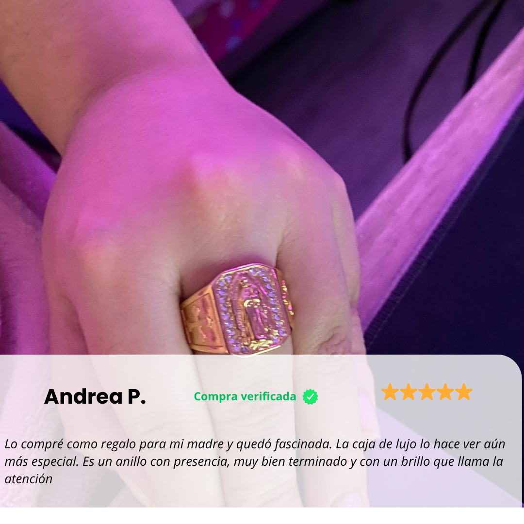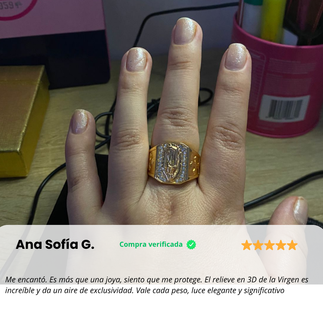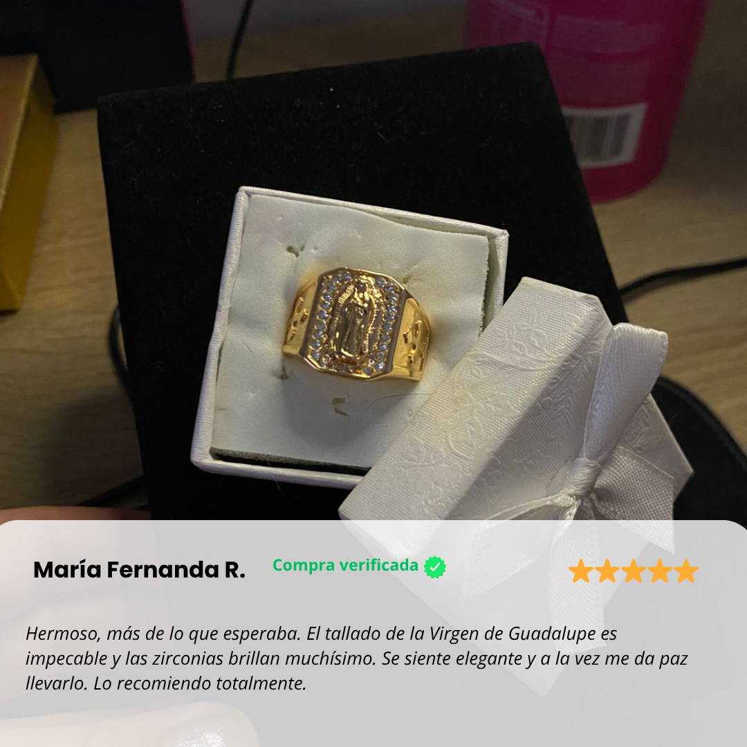 Anillo Guadalupe Dorado con Zirconias, Luce lujo y protección en cada detalle 🙏🏻