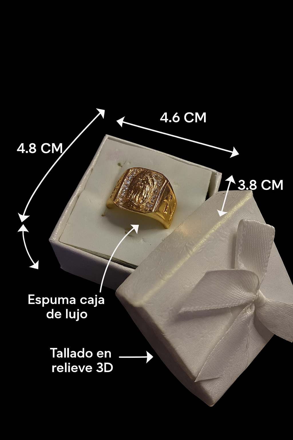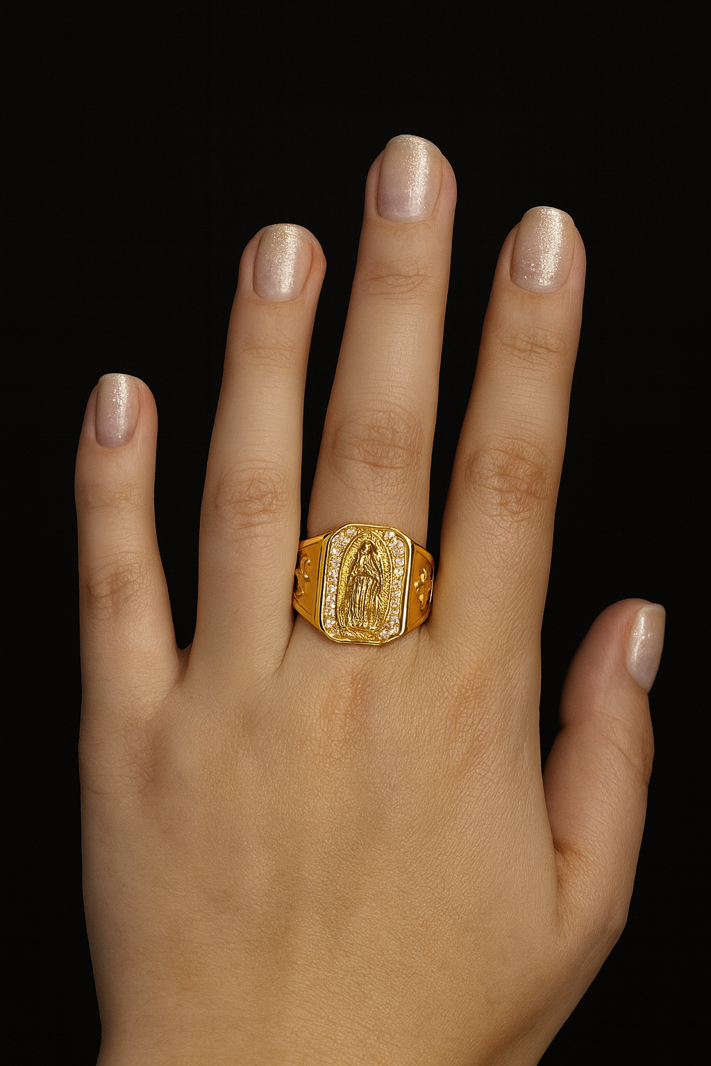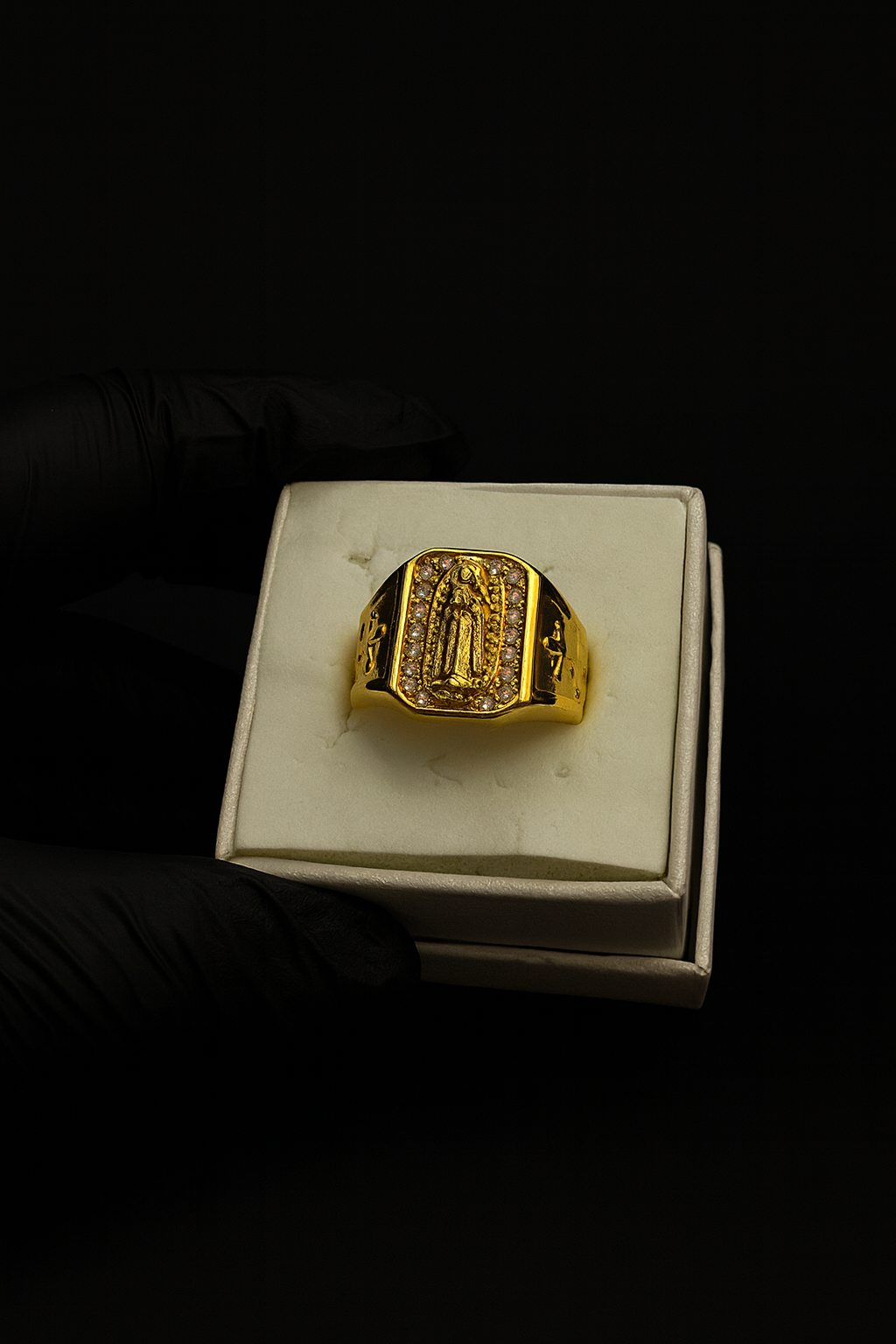 Anillo Guadalupe Dorado con Zirconias, Luce lujo y protección en cada detalle 🙏🏻